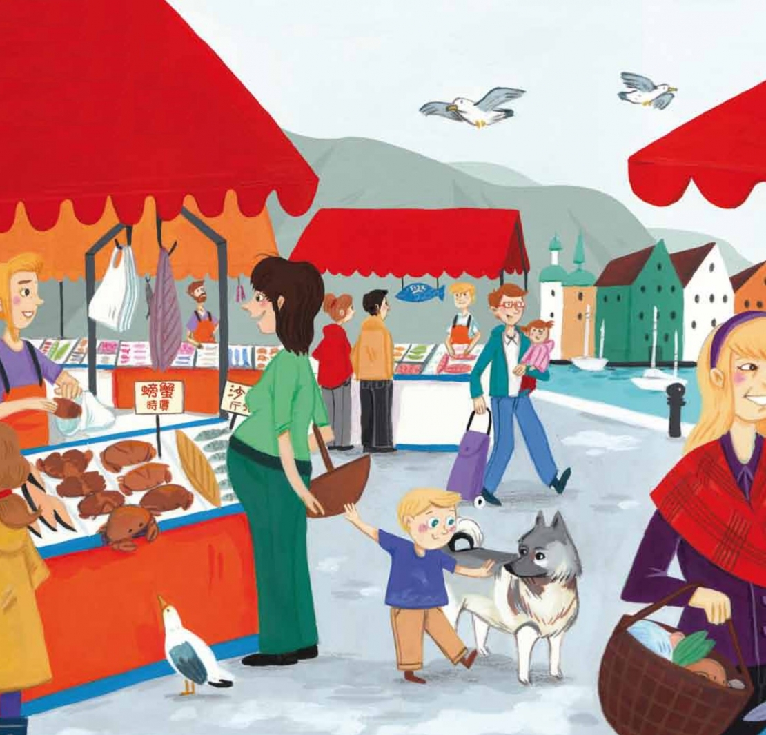 除了法文原書內容,增加台灣傳統市場自製文圖及錄音,邀請近年插畫新秀王書曼來畫插圖,凸顯台灣的市場特色。