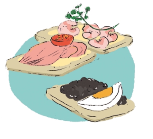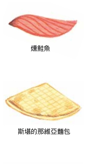 斯堪的那維亞Skandinavien半島上的居民,長久以來,一直非常喜歡拿這種「抹了奶油的麵包」,又稱「開放式三明治Smørrebrød」的麵包片當午餐。