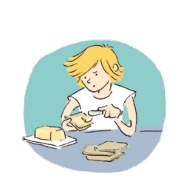 把買來的新鮮麵包切片,最好選擇全麥麵包,或者是斯堪的那維亞半島地區的傳統麵包。在切好的麵包片塗上奶油。