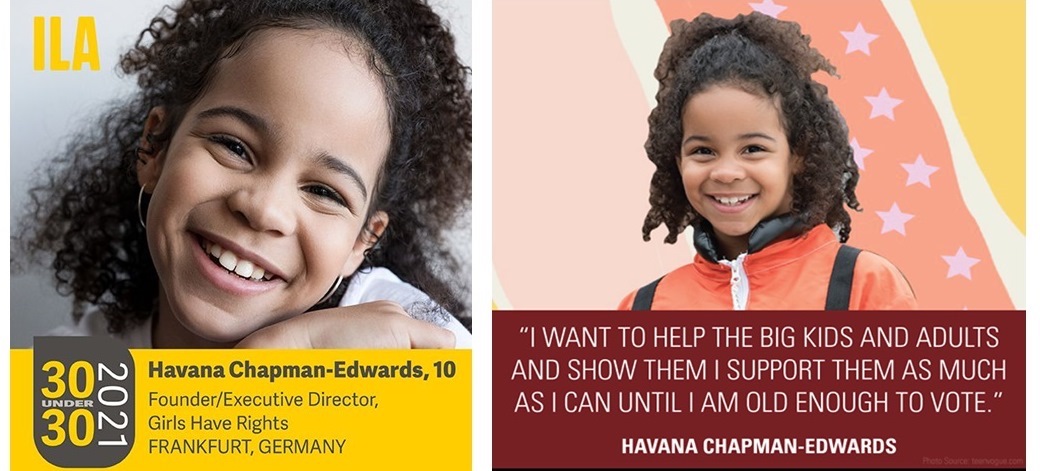 她是來自德國的黑人女孩哈瓦娜・查普曼愛德華茲(Havana Chapman-Edwards)。10歲的她自稱是「社會運動家」與「慈善家」,也是女孩有權利(Girls Have Rights)的創辦人兼執行長。