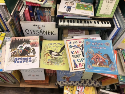 除了繪本之外,我居然還買了一本跟字典一樣厚的林格倫介紹,以及兩本一模一樣的橋樑書—一本是捷克文原版,一本是日文翻譯版。這裡的價格偏貴,剛剛提到的庫巴斯塔立體書一本破萬日幣。最後結帳我提了兩大袋,忍不住拍了一下計算機上的總金額:55300。想來這邊挖寶的人,記得看緊你的荷包!