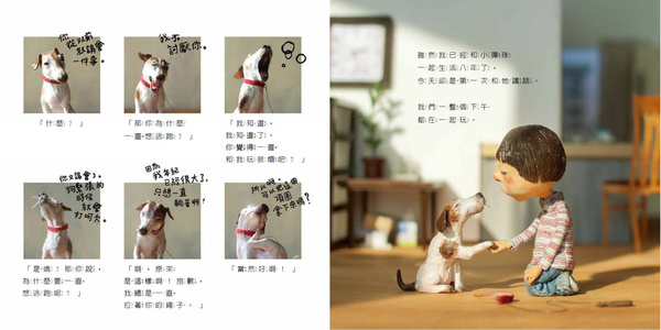 除了狗主角「珠珠」,作者還製作了其他狗的小偶,包含珠珠的媽媽,以及同母異父的眾多手足,加起來共有30隻,令人嘆為觀止。此書是以珠珠為主述者,娓娓道出牠被人領養後的生活,沒有太多鮮明的故事情節,但卻充滿鮮明的生活感,像是翻閱自家的相簿一般,回頭再看那些平凡的日常點滴,都變得珍貴無比。