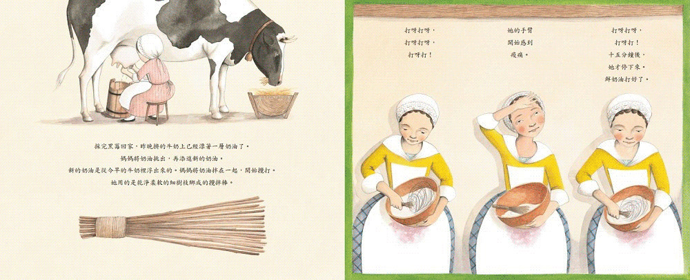 一本繪本故事,切入探討呈現的歷史面向如此豐厚,怎能叫人不喜歡呢?光是讀這些細緻溫婉的圖像藝術,就令人好滿足呢!一道甜點橫跨百年歷史,那份甜甜香香的滋味,沒有改變,人們喜愛它的心意,是──跨時代的喜歡。書末貼心附上黑莓鮮奶油的食譜,親子不妨動手一起做做看!看過這個故事,在動手製做的當下,已經不再是單純的一道甜點,而是正站在時代裡的這個時間點,我們正與歷史相連,和它說「嗨」。