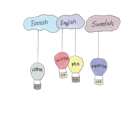 我想,媽媽們對芬蘭感到最好奇的部分,應該是大部分當地小朋友都會至少三國以上的語言,而且據說他們都是自然習得的。對於還未跨越英語障礙的我來說,自然也是很感興趣的議題。