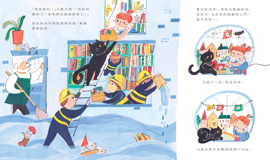 直到有一天早上,一場大雨讓孩子們都無法再來到書店,一天又一天的過去,小書店好像被遺忘了,怎麼辦呢?