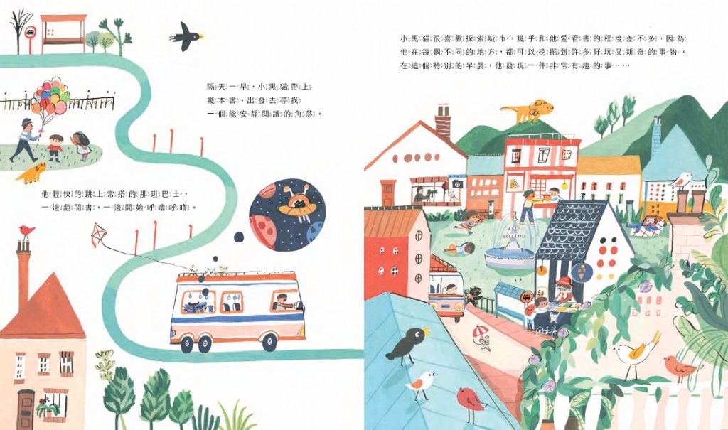 閱讀不只是靜靜的讀一本書,小黑貓對這個世界同樣充滿好奇,所以從書本延伸到對城市的探險,小黑貓在旅途中偶遇小書店徵人,決定將這份愛書的熱情,化為漣漪,讓每位走進書店的人,都能找到適合的書。