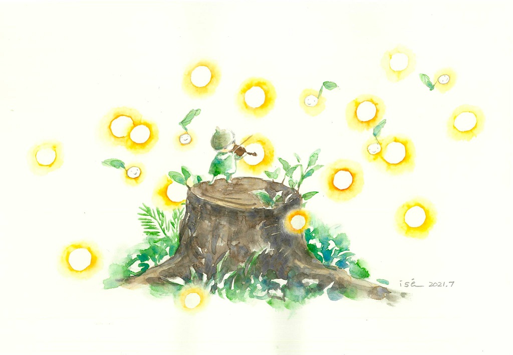 日本重量級繪本作家伊勢英子以「きこえる きこえる 沈黙の歌」(聽得見、聽得見、沈默的歌)首發並創作兩幅作品,繪出在微光中拉起小提琴的精靈、以及自老樹新生的希望,長谷川義史則是描繪孩童手捧如同心臟的蘋果「心はひとつ」(one heart),近(8/11)日則由荒井良二接棒,以兩位彈奏者的形象傳達「I support freedom in Hong Kong」(我支持自由的香港)。