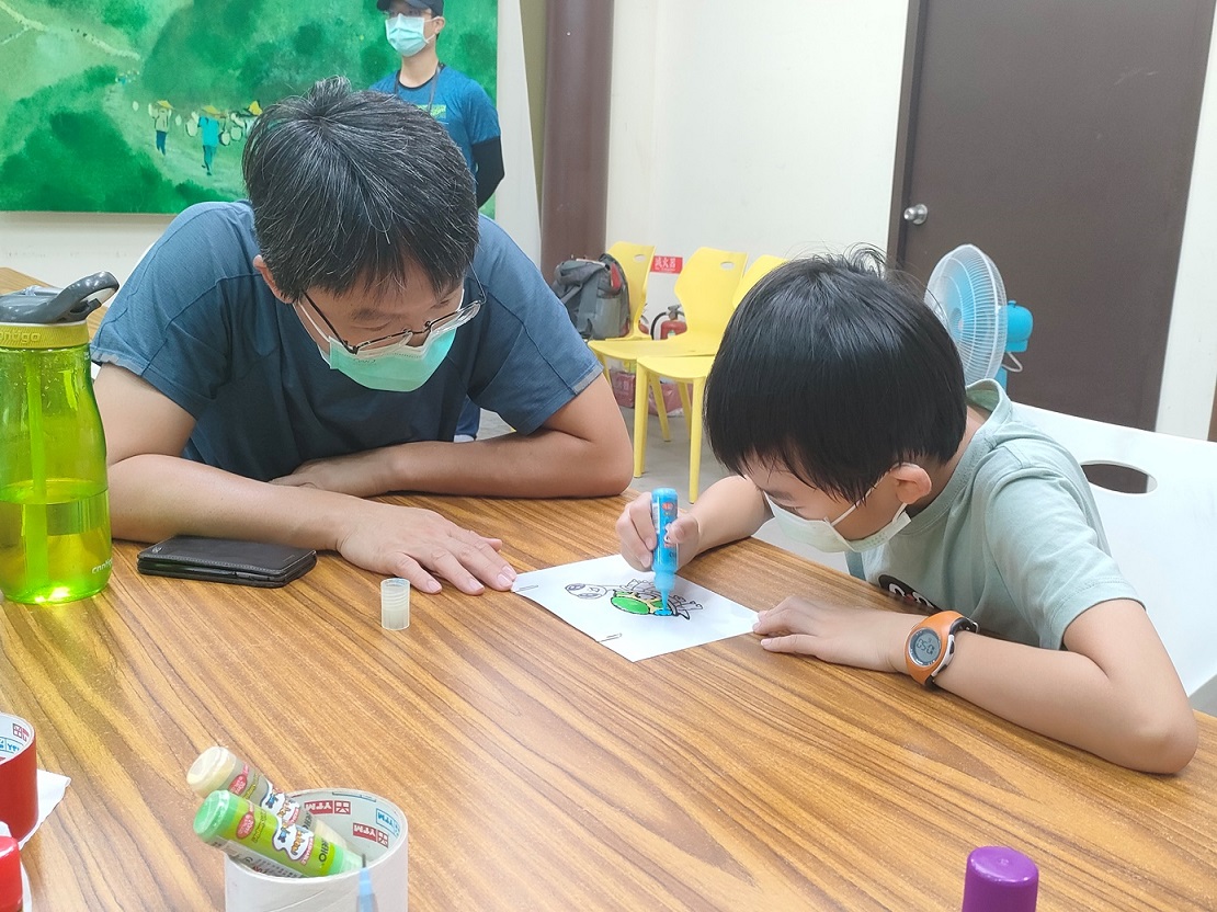 課程中也安排龜類模型的玻璃彩繪藝術創作,不僅增進親子互動,也從中認識龜類面臨的環境議題,強化龜類的保育意識。學員們在歡笑中恣意揮灑創作,更有不少學員發揮創意,突破原本線條的框架,最終大家完成的成果多彩繽紛、琳瑯滿目,一字排開特別吸睛搶眼,也更加深了此堂課程所欲傳遞的理念。