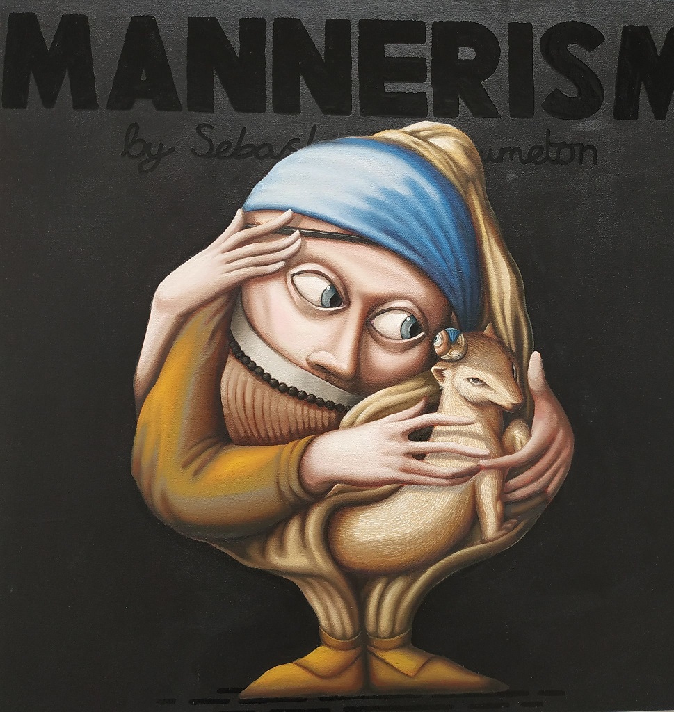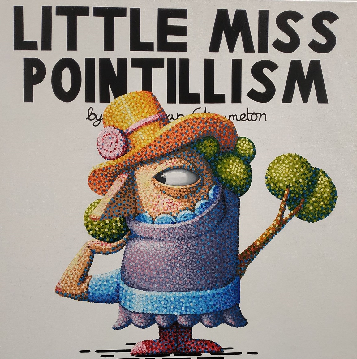 位在台北內湖的白石畫廊,上一檔展覽:賽巴斯汀 · 休默頓個展:迷你派,1996年生於英國倫敦的藝術家賽巴斯汀 · 休默頓(Sebastian Chaumeton)表示「這次展覽主題裡有更深層次的意義,那就是各個藝術流派之間密集而無聲的對話。我將它們擬人化,讓他們擁有自主權,因為實際上藝術流派確實擁有自主權。」受到英國兒童文學《奇先生妙小姐》(Mr. Men and Little Miss)啟發,休默頓將藝術史上的各個藝術流派擬人化為獨立角色,當中最能產生共鳴的作品包括〈點描派小小姐〉圖1及〈超現實主義先生〉圖2等。這次的展覽展出約有20件,是藝術家於2021年創作的作品。看展時心中不斷浮現一些教學點子迫不及待要和小朋友們分享。