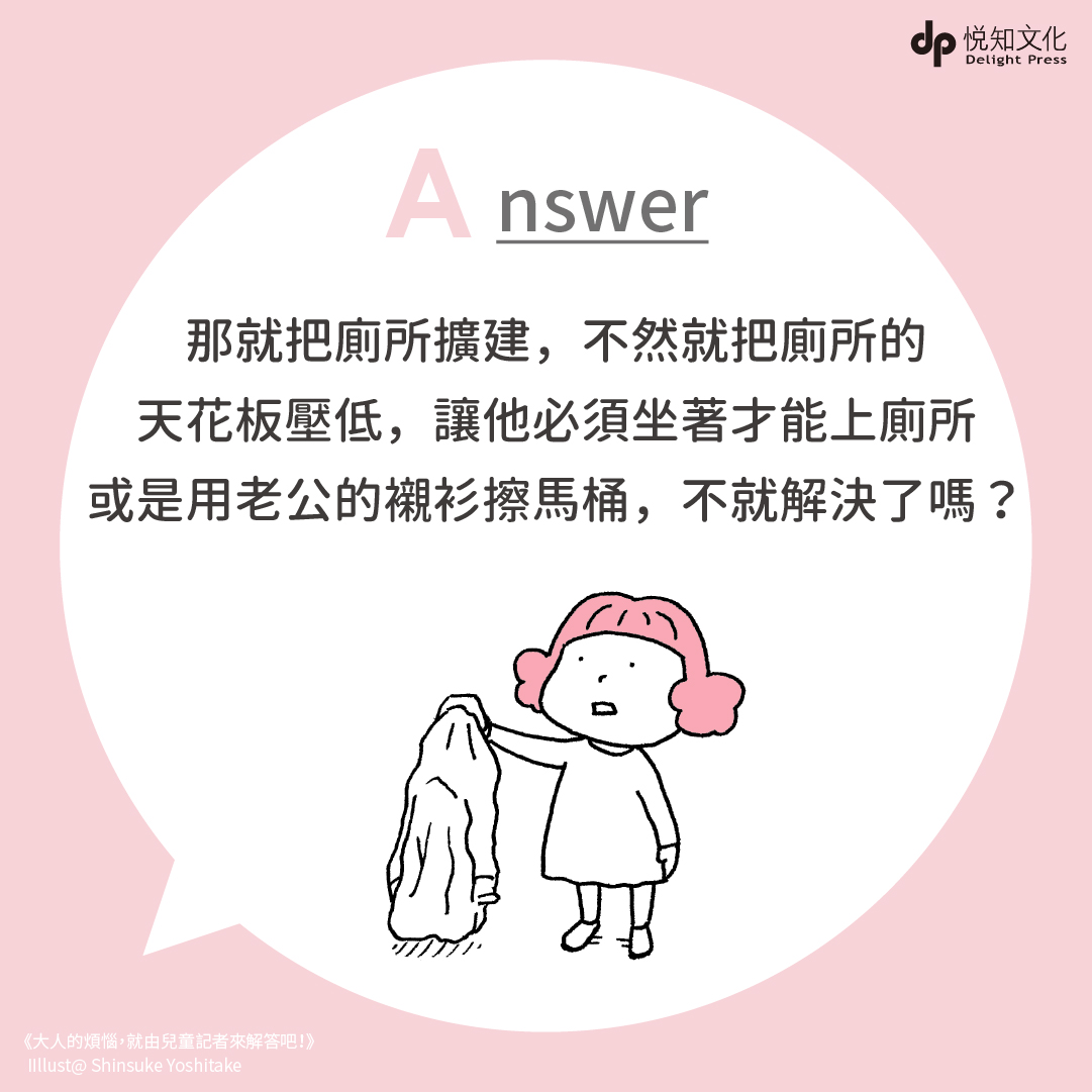 但家裡恐怕沒這種閒錢吧!最近經濟不景氣,大家收入似乎也減少了⋯⋯不然,就把廁所的天花板壓低一點,逼他必須坐著才能上廁所。