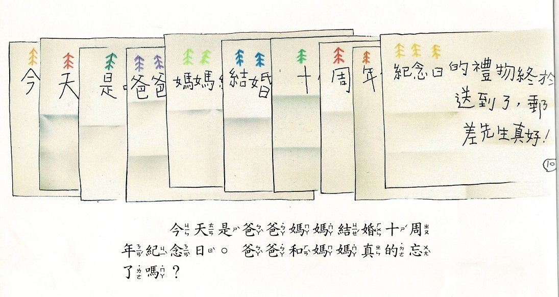 瀨田貞二始終抱持著「兒童文學的作品應該傳遞家庭的幸福感」的信念,這份幸福感也在我與孩子共讀《今天是甚麼日子呢?》兩年後,悄悄傳遞給我。一天早上,突然收到孩子們給我的信(圖片10)。