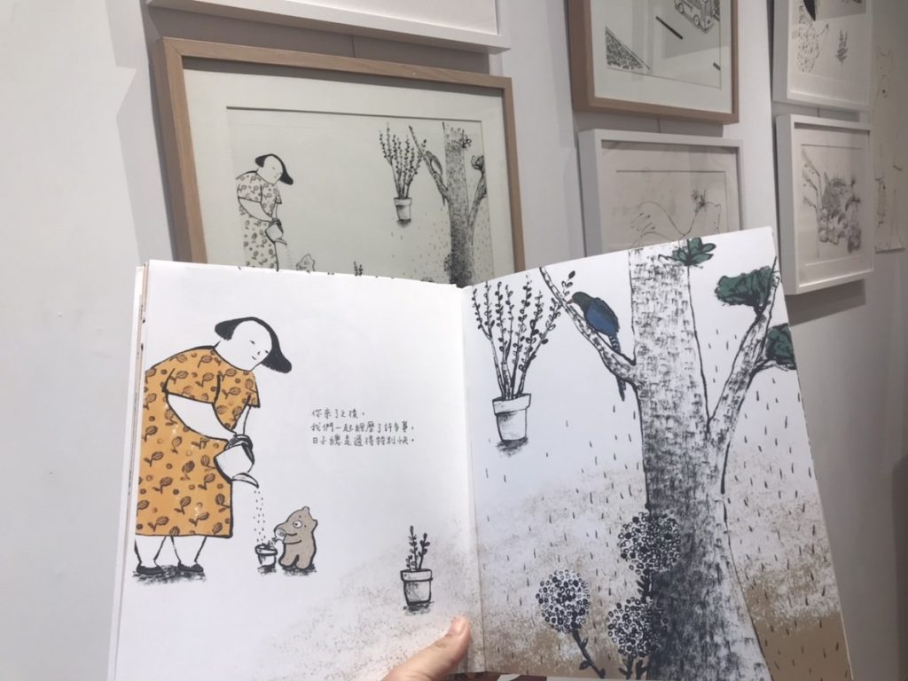 溫暖的繪本內頁幻化成一幅幅有框的原畫,佈滿展間潔白的牆。