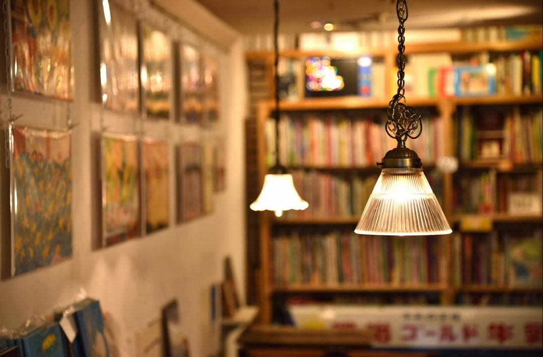 SEE MORE GLASS是一間位於原宿的小小繪本咖啡廳,它開幕於1996年,至今已有25個年頭,在推特上置頂的推文就是25週年紀念影片。我每次去日本一定會去它對面的Design Tshirts Store graniph買繪本聯名衣服,卻鮮少想到對面還有一間小小的繪本空間。SEE MORE GLASS空間不大,兩三張桌子加上吧台,頂多能容納十個人。而且還在複合商業大樓的地下室,從大樓前經過一不留神就會錯過。地下一樓的地下街內,許多店鋪的空間鐵門拉下,等待出租。其實這裡的氣氛,很難讓人想像這裡有繪本咖啡廳。