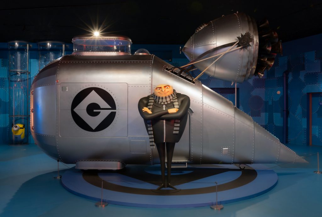 《神偷奶爸大視界》特展中,可以看到電影中經典場景的美術設計原稿,讓觀眾有機會一窺電影背後的創作秘辛及角色初始設定。緊接著跟隨小小兵們的腳步,一起揭開格魯的秘密實驗室,不僅有1:1等身大的格魯與格魯車展示,更可以看見隨處搗蛋的小小兵正在大鬧實驗室,邀請粉絲一起加入惡作劇的行列!