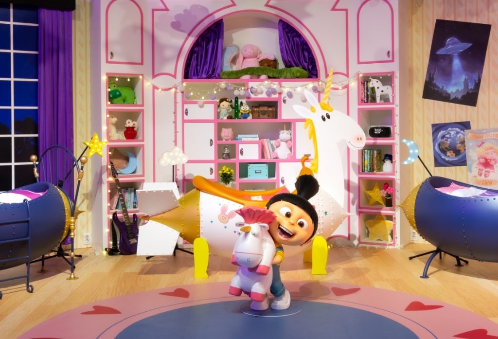 離開神秘的實驗室,映入眼簾的是充滿童趣且溫馨的房間,滿版的彩繪牆能隨心所欲替圖案填上喜愛的顏色,與朋友們一起完成獨一無二的創作。而小女孩Agnes最珍愛的獨角獸也巨大化現身,成為富有滿滿少女心的熱門打卡景點。另外,電影中的指標性反派也齊聚一堂,包括維克多、史嘉蕾殺很大等人,在這裡可以挑戰電影裡的重重關卡打擊壞蛋,留下勝利的合影紀念!
