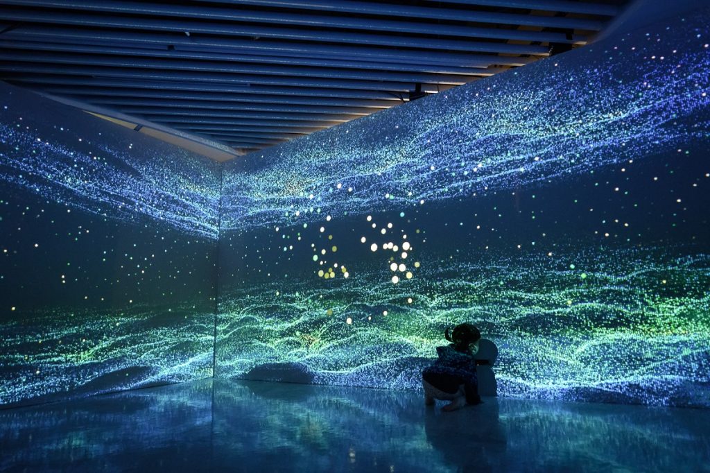 「走近一片海」特展藝術品內容多元,更致力於展場打造多元體驗的空間。毛利悠子將海浪聲轉化成即興鋼琴獨奏,彷彿自然想藉此與我們對話;胡縉祥與蔡秉樺擷取即時氣象資訊,將數據轉換為水波紋的虛擬影像,藉機械裝置展現海浪舞動的姿態;SUPERBIEN則是與摩納哥海洋學研究所合作,打造一座「海洋奧德賽沉浸劇場」(Oceans Digital Immersive Odyssey),讓觀眾盡情地深潛於大海,並與海洋物種互動;李家祥與李葳靜以被「海洋泡泡」包覆的環境,讓觀眾沉浸感受大海所蘊含的豐盈而充沛的生命能量;邱杰森與莫珊嵐透過現代地圖上消逝已久的海怪,重新喚醒海怪潛藏在人心中的故事;蔡宛璇用詩文記錄幼兒與母語的相遇,也藉此轉譯與海洋的相處、與生長環境的對話。