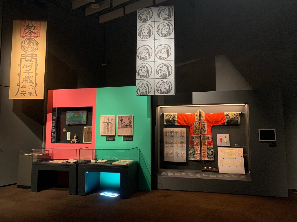 值得一提的是精采展品,除了臺史博本身館藏豐富的臺灣文物外,借展自德國日耳曼國家博物館47組件的歐洲珍貴文物,包括出身紐倫堡的北方文藝復興大師阿爾布雷希特‧杜勒(Albrecht Dürer)所繪製的希臘命運女神版畫「涅墨西斯」;15世紀德文方言版聖經—科貝格聖經;16世紀的星盤;煉金術士製作的疾病護身符;提供給朝聖者的可食用護身符(Schluckbildchen)…等,以及中央研究院的殷商甲骨、漢代用以辟邪的桃符,國立臺灣博物館的原住民占卜用具,與府城算命巷百年老店啟明堂擇日館、白惠文姓名學等重要文物,亦是展覽的一大亮點,不容錯過。