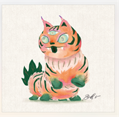 角斯、林欣昉、陳虹伃和CROTER,從生肖著手,設計各異其趣的虎年提燈。其中,台灣最會畫妖怪的角斯,則發展《虎爺的波波貓》故事提燈,這隻虎爺的信差,能在人類身上留下分辨好壞的光粉,額頭上的第三隻眼則能射出讓壞蛋無所遁形的光波,平常樂趣是看人吵架。虎爺提著牠,元宵走春時遊走人世。高雄唯一具里長身分的插畫家馬里斯,則因服務里民的常態,以臺灣生態作為設計理念,設計《分享》提燈,把臺灣的美景分享世界,同時由你我守護。