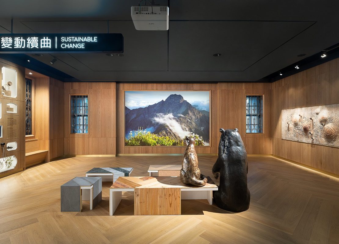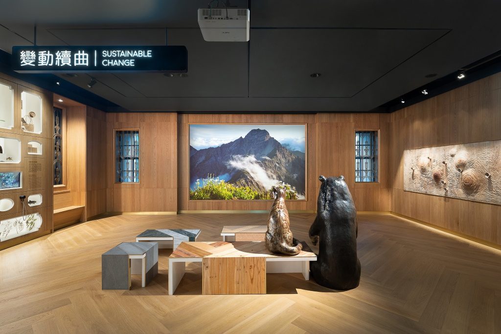 除了多元的標本與展品,自然臺灣也融入藝術創作:「生命之歌」,流動的生命音符最終注入展場尾端的「生聲不息」聲景裝置。「生聲不息」是由臺灣各地採集的聲音資料,與臺灣樟木雕刻的意象臺灣結合而成,希望觀眾貼耳聆聽各地真實的聲音,感受海洋的活力與土地的溫暖,進而心生與臺灣家園共生共榮的願景。此外,栩栩如生的臺灣雲豹與臺灣黑熊銅雕端坐展場端點,在這裡,觀眾能與臺灣重要的哺乳動物同坐,並肩觀賞家園的律動生息,這不僅是想像,更是對美好家園的共同期盼。