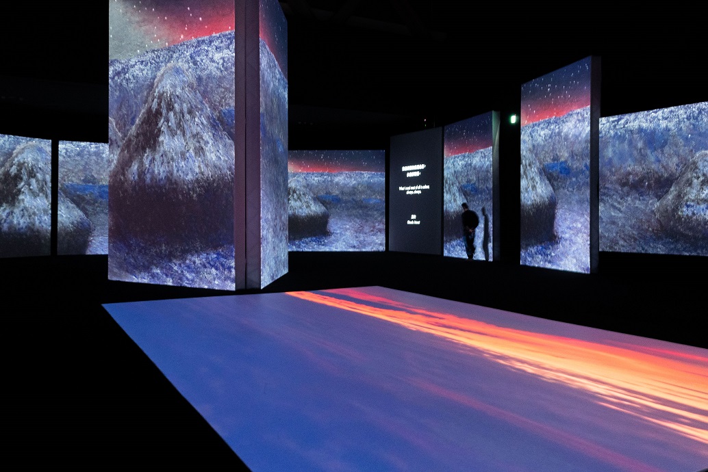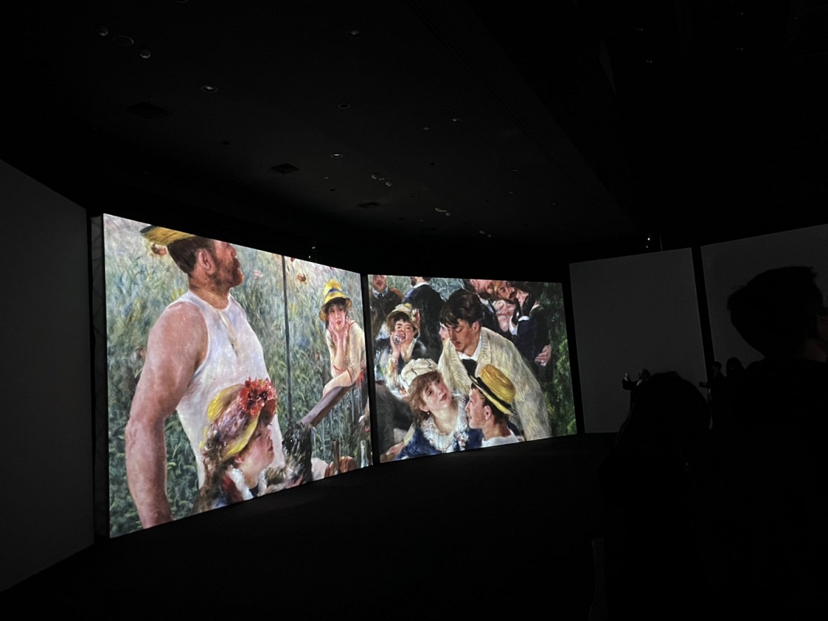 沉浸式投影區結合影像、聲音、氣味營造全方位體驗的觀展環境,彷彿投身印象派輝煌年代。