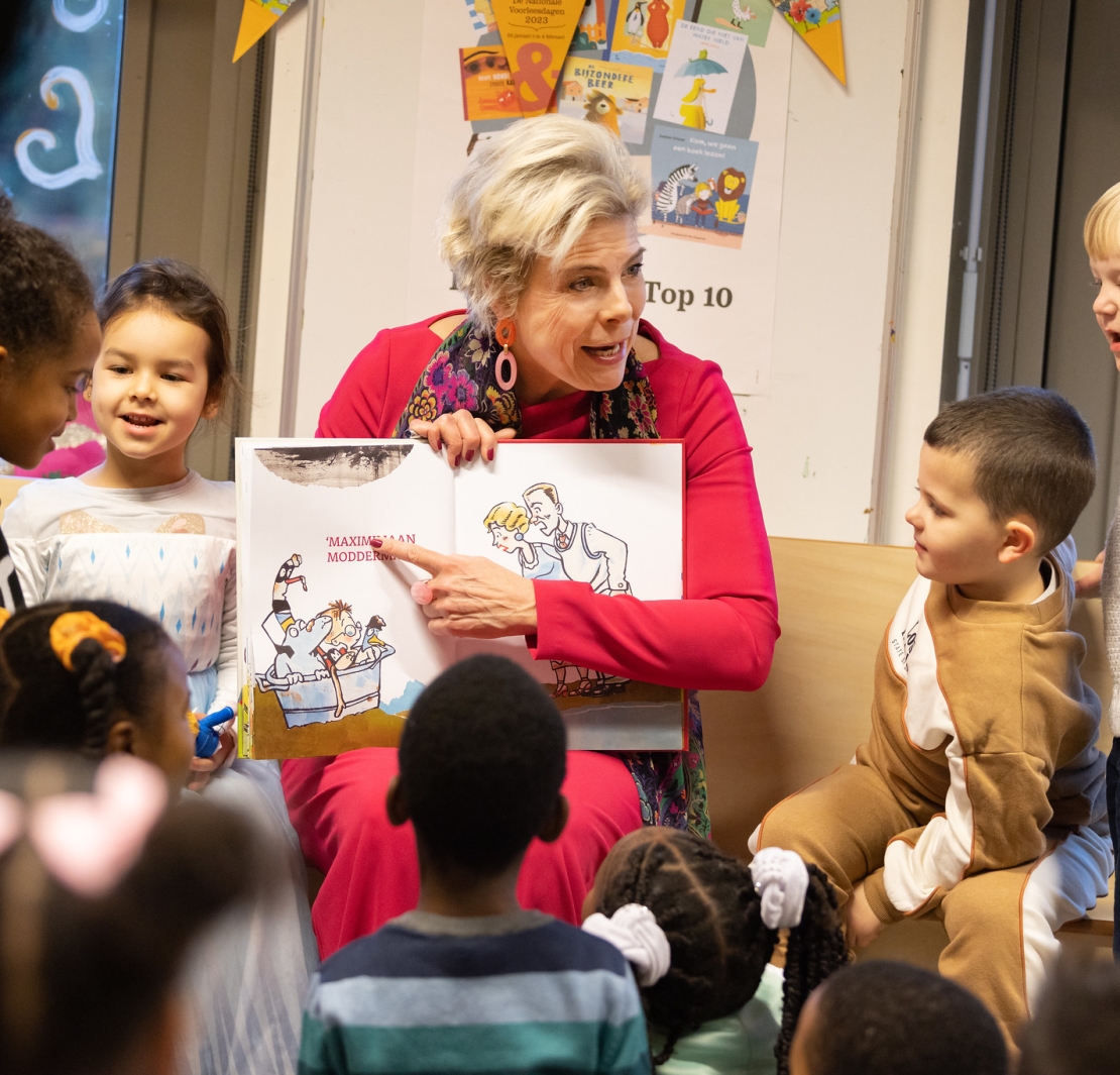 荷蘭名人為孩子讀故事:「早餐閱讀約會」是共讀推廣日聚集聲量與媒體關注的一大活動。今年的推廣日再次由皇室成員勞倫蒂王妃(H.K.H. Prinses Laurentien)揭開序幕,她到訪南荷蘭小鎮,在早餐時間為一班小學生們閱讀今年的精選繪本。