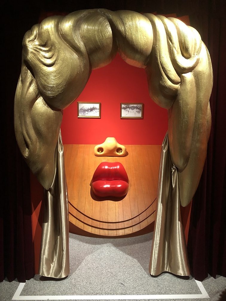 對於達利而言,妻子卡拉是創作上的繆思女神、安定身心的力量,在他的作品中常常看到卡拉的影子。達利為了愛妻作出了這個浪漫的小套房的點子:把二度空間轉換成三度空間,用一個出名女星梅維斯的臉來做雙重圖像,變成了一個可以走動的空間,這次展場也很難得可以看到授權重製西班牙達利戲劇博物館定點裝置的「梅維斯廳 (Mae West room)」。