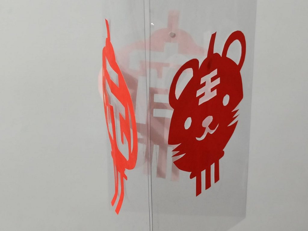 步驟5:將一張透明的投影片,圍成筒狀或三角柱狀,邊緣利用膠帶固定,將剪好的虎貼上,中間放個小燈,就可完成一個獨一無二的小燈籠,如圖11。