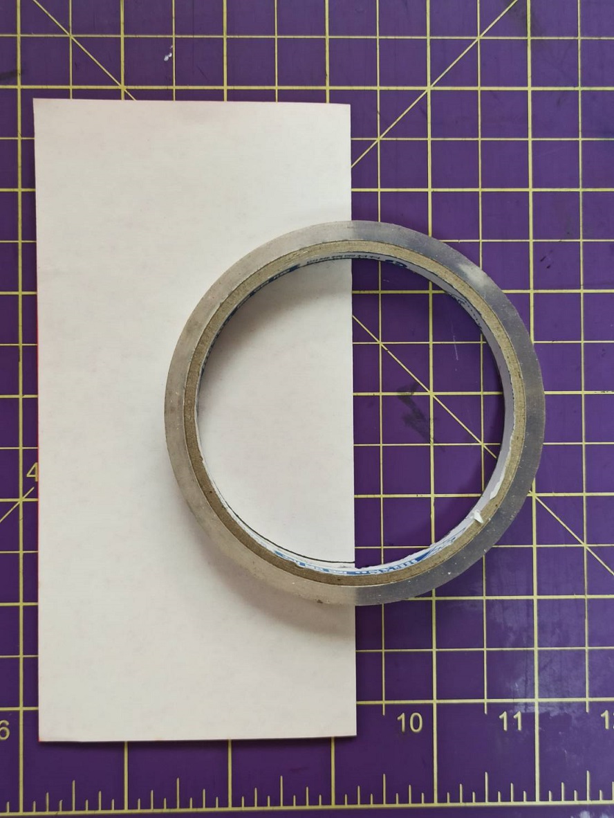 步驟1:將紙張對摺後,利用透明膠帶在摺邊畫個半圓,如圖7。