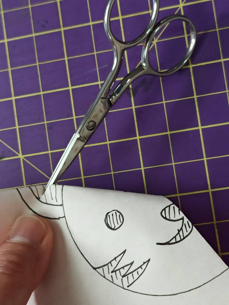 步驟2:描繪要剪下的眼、耳等細節,可以請小朋友鈄線畫出要剪下的區域,如圖8。