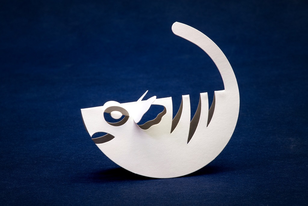 洪新富老師也利用圓形創造了十二生肖,這系列很適合低年級的延伸活動,圓形對半摺,剪出立體的耳朵,身上的條紋象徵著老虎,再留出一條長長的尾巴,放在桌上,輕輕點一下,搖動的小老虎彷彿在祝福大家平安喔!