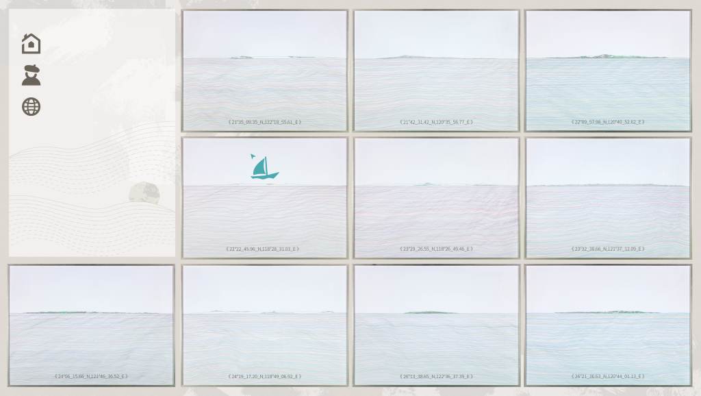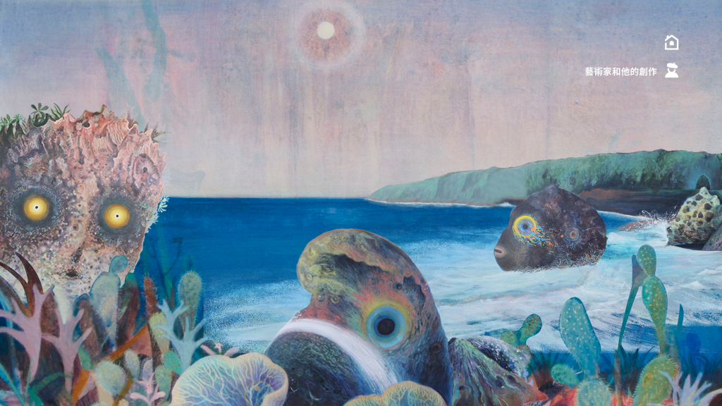 本計畫中亦邀請藝術家呈現漫遊水文的多種視野。葉海地以豐富而細緻的油畫創作,呈現「萬物有靈」的宇宙觀,本次策展結合動畫效果,將藝術家筆下變幻莫測的風景進行動態詮釋;楊順發擅長優美的攝影敘事呈現《台灣水沒》的嚴肅議題,策展團隊將其海岸線攝影融和視覺地圖,觀者得以透過檢索互動功能,認識臺灣地層下陷之環境思考。在疫情的影響下,藝術愛好者無法像往常頻繁造訪美術館,因而進一步催生線上展的蓬勃發展。「出航–桃園市兒童美術館 網上開展」線上展出的藝術作品類型多元,飛行的多重體驗,在本次展出有豐富的視野。