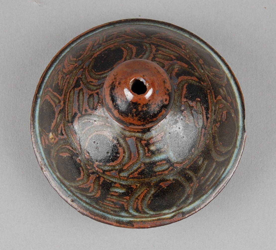 說到旅遊一定要做的事,當然不能錯過品嚐在地美食囉~走到非洲展廳,眼前這個紅褐色的陶瓷上,繪著黑色橢圓形及看似凌亂又帶點自然狂野氣息的黑藍相間線條,不禁讓貪嘴的老派博粉聯想到臺灣的仙草和米苔目,也讓人好奇它的功能到底是什麼?!其實,這個圓弧形的陶瓷並非裝盛東西的容器,而是非洲奈及利亞咖啡壺的蓋子,中間的孔洞很可能是為了讓熱咖啡的煙飄散出去所設計的,蓋子底下通常會搭配一個有著長型壺嘴的咖啡壺,為到訪的你酌上一杯香氣獨特的咖啡。位於非洲西部的奈及利亞是非洲頂級咖啡的產地之一,這裡所產的咖啡豆香氣中帶點紅酒酸味,口感狂野,就像蓋子上的圖案呢!