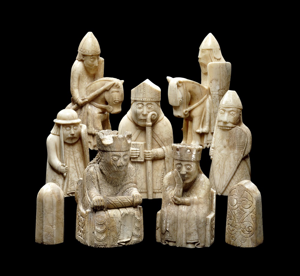 修煉之路的最後,來挑戰刺激的遊戲吧!眼前這些小玩偶該怎麼玩啊?其實它們是來自900多年前歐洲中世紀的西洋棋喔!最前方坐著的人物是頭戴皇冠的國王與皇后,左邊的國王不苟言笑地盯著前方,若有所思;右邊的皇后則睜大眼睛用手摸著右臉頰,彷彿正無聲說著:「我的牙齒好痛啊」。後面的主教與騎士們的表情也呆萌呆萌的,有種既嚴肅又可愛的感覺。這套由海象與鯨魚牙齒雕刻而成的路易斯西洋棋,除了是大英博物館的鎮館之寶之一,電影《哈利波特》第一集裡哈利和榮恩用魔法下的西洋棋造型也曾經參考過這些身世至今仍有許多謎團的小人偶呢!
