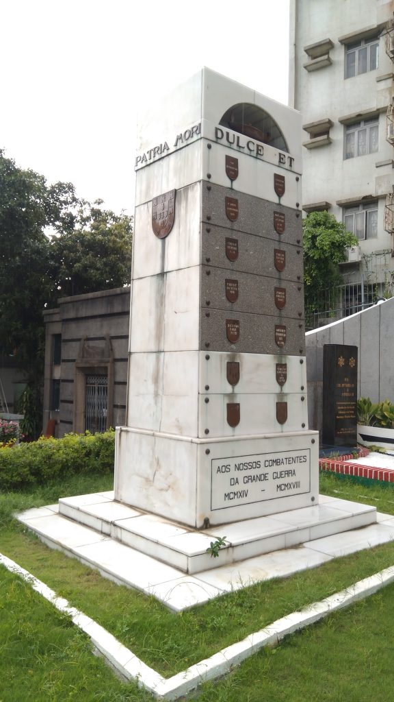 在專欄中多次提到的墳場,許多年輕人的墓碑寫著他們死於「遠東的一場戰役」,因為是基督教墳場,所以我們可以知道那場讓許多人喪命的戰事,是鴉片戰爭。歐戰呢?就算是與亞洲看似無關的歐戰,也在澳門有一個戰士紀念碑,寫下他們的名字。
