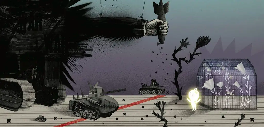 過去一個月,烏俄戰事開打,莫斯科有出版社亦發行了《戰爭》,「作為近現代兒童文學的反戰聲明與控訴」,就像在2015年一本講戰爭的烏克蘭繪本”How War Changed Rondo” ,( “Війна Що Змінила Рондо”, Romana Romanyshyn and Andriy Lesiv簡體中文版名為《會唱歌的花》長江少年兒童出版社),裡頭的主人翁丹科是個透明閃亮的人,他和朋友們住在一個叫朗多的地方,戰爭來了,生活巨變,他們使勁對付戰爭,拯救所有會唱歌的花。在這樣的艱難時刻,進行這些日常討論之必需,唱出和平的歌,只因兒童需活得像繪本封底那一句話