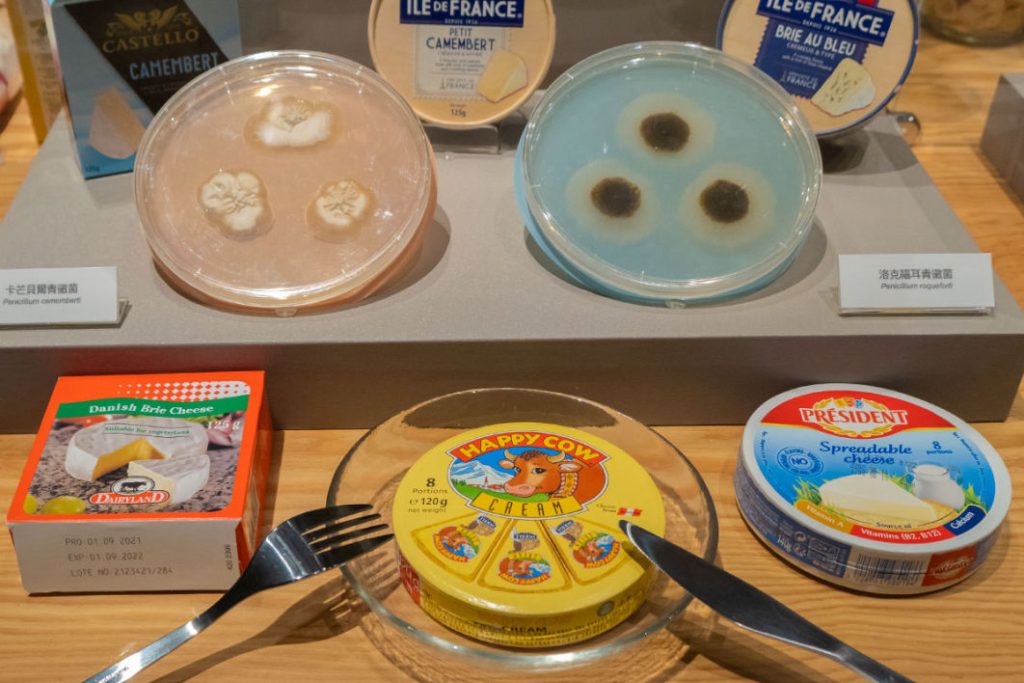 無論你我是否意識到,微真菌早已深入我們的生活,緊接著的「眼不見為淨?生活中的“好”“壞”菌」展區,就從日常飲食、用品、醫療健康層面切入,舉凡各種酒類、發酵茶,醬油、味噌、紅麴等調味料,豆腐乳、起司、天貝等發酵食品與東西方麵食,以及清潔劑、飲料、化妝品、醫療用藥、健康食品等日常用品,我們的飲食與生活處處充滿著微真菌。然而,不當儲存會造成食物發霉、產生真菌毒素,環境、人體健康狀況不佳時也會引發真菌性疾病,這些則讓人聞之色變。