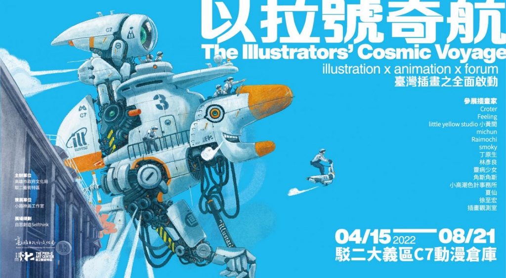 乘載插畫奇幻夢想的「以拉號」,將自駁二啟航,4月15日至8月21日於駁二藝術特區大義C7動漫倉庫展出的「以拉號奇航——臺灣插畫之全面啟動」,由小路映画工作室黃米露策展,邀請14組插畫藝術創作者參展,以不同媒材呈現插畫作品,更在展場中蓋起直播塔台,讓喜愛插畫的民眾體驗不一樣的插畫主題展。