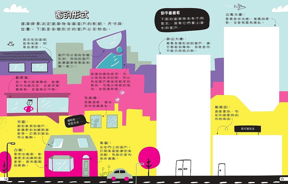 歡迎來到建築的世界,這本書可玩、可畫、可寫,裡面有滿滿的點子準備激發你的想像力。拿起筆,體驗書中各種精采的活動,試著設計建築物、製作模型、創造地景,你也能像建築師一樣思考,發揮自己的創意!