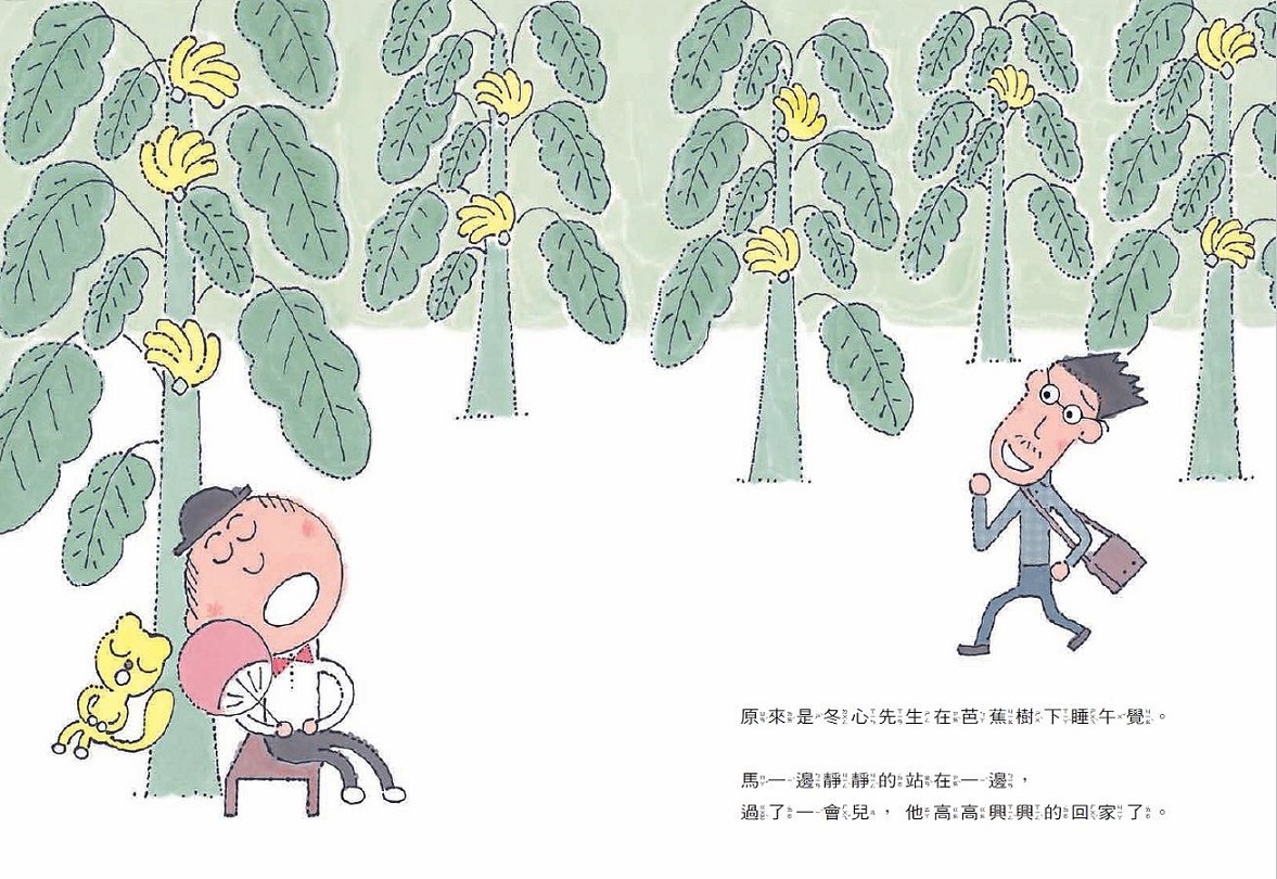 情節從馬一邊想送夏冬心生日禮物做為起點,這邊看看、那邊找找,最後馬一邊在芭蕉樹下找到了正在午睡的夏冬心,馬一邊有沒有吵醒他?沒有。他只是靜靜的站在一邊,然後開心的離開了。故事最後,當然,夏冬心收到了馬一邊精心繪製的生日禮物,不只有畫作,還寫了文字、落了款呢!相當的慎重。