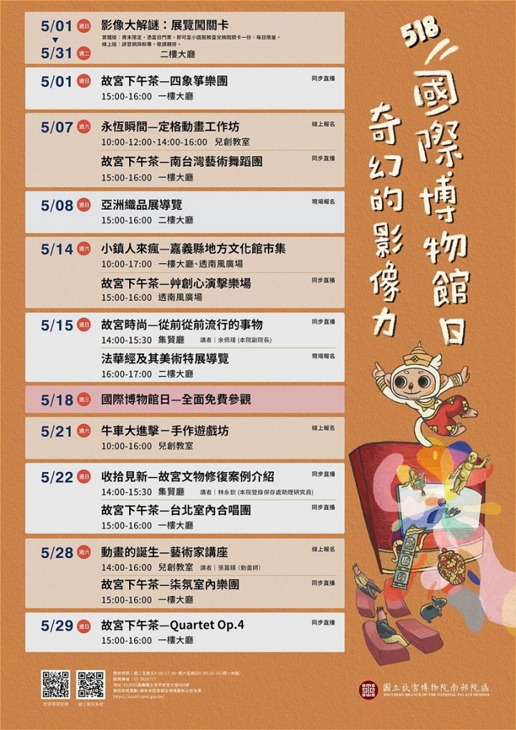 故宮南院「奇幻的影像力」5月活動表(圖片來源:國立故宮博物院)