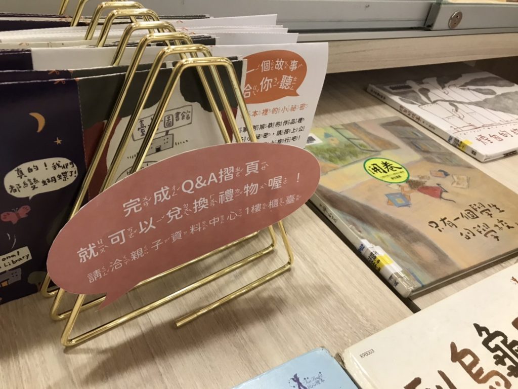 讀者朋友們在展覽期間到「說一個故事給你聽──劉旭恭繪本及原畫展」的四個展區,來一趟解密之旅,並完成Q&A摺頁,就可將小禮物一起帶回家!(現場可洽詢親子資料中心館方)