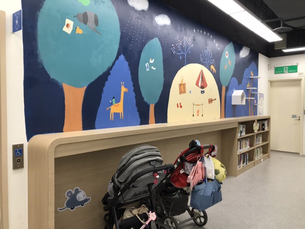 親子資料中心:B1劉旭恭老師親手繪製的牆面