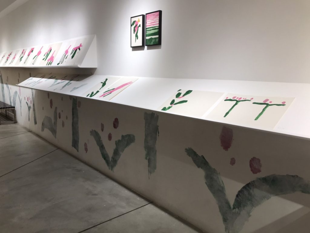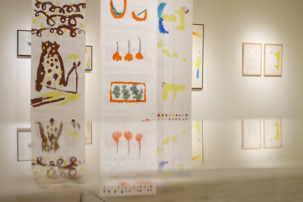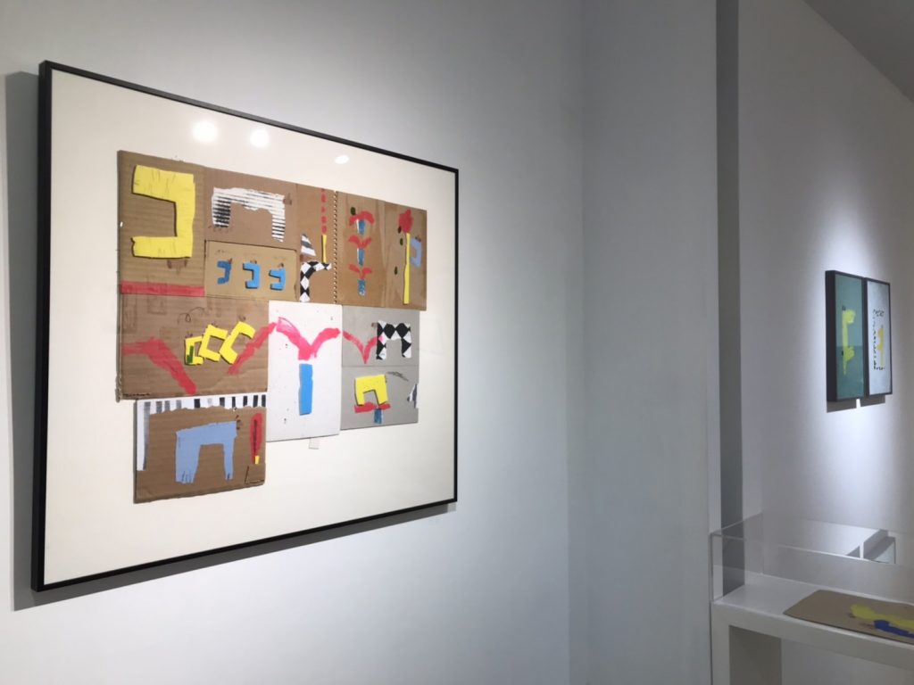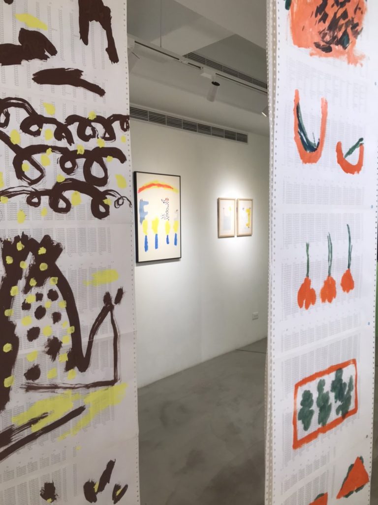 張筱琦在佈展之餘,接受小典藏簡單訪談,談到回台隔離期間,重整身心狀態後,回來之後的新創作,順應身體的直覺,畫了很多很多的「凹」。不同顏色的凹、不同方向的凹、長出了頭的凹、長出了尾巴的凹、長出了脖子的凹,自然且自由的變化著,呈現眼前的各種凹凹。因為長期使用不同紙材做創作,也累積許多創作後剩餘、各種形狀材質的小紙材,趁此機會重新又畫又剪又撕又黏,搖身一變成為新作品。