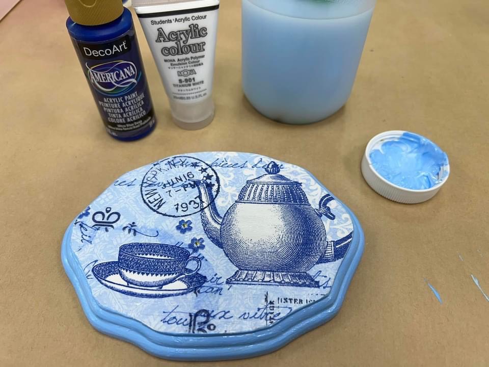 許多拼貼藝術的創作,作品中運用了複合媒材,也有藝術家將不同的物質結合轉換,轉換的部分可以是材質、顏色,或是顛覆邏輯的視覺經驗。透過拼貼的創作,加上融入日常生活的興趣,讓想像力發揮到生活周遭。蝶古巴特(圖4)就是一個簡單操作且充滿樂趣的拼貼表現方式。有時不想受限於餐巾紙上的圖案,也試過將想要的字書寫於宣紙上,再利用蝶古巴特拼貼技法做出獨特的禮物送給朋友,當然書寫時可用水彩顏料增添色彩的豐富性。