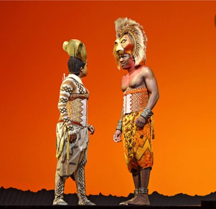 近日來台的紐約百老匯音樂劇:獅子王 The Lion King, 獲得最佳音樂劇導演和最佳造型設計獎等獎項。音樂劇《獅子王》不只是電影版的簡單改編,而是重新創造了一種自己獨特的戲劇語言來詮釋這個故事,讓每個演員都能在動物面具、服裝之後,還能看到自己的面目表情(圖8)。我覺得這也一種拼貼的表現手法。