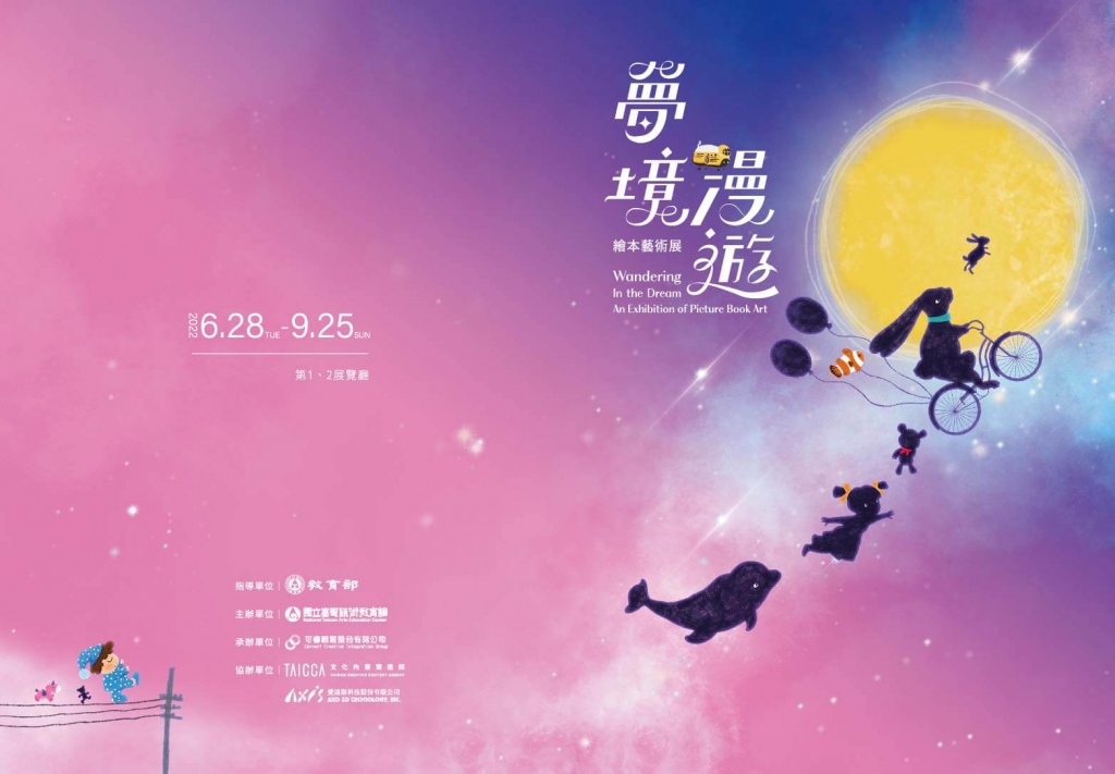 「夢境漫遊:繪本藝術展」以夢為起始、神祕洞穴為入口,依作品內涵分成「晚安屋」、「夢境房」二大展區,匯集臺灣、法國、日本、美國的繪本創作,以科技互動策展方式打開孩子們感官想像,藉由影像、聲音與視覺,感受繪本的奇幻、奧妙,同時講述現今世代下繪本視覺教育樣態的多樣性。邀請各位一起進入繪本的迷人世界,在白日盡情地漫遊繪本的國度。