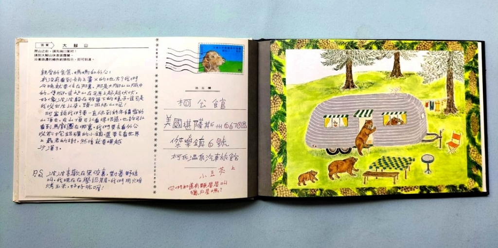 正值暑假時期,也是全家到外地旅遊或者探訪親友的時機,如果能夠將旅行的過程、心情、所見所聞寫在明信片,然後投入郵筒寄給親友,彷彿也是一種旅遊的儀式,收到旅遊明信片的親友一定很驚喜也感到喜悅吧!關於明信片的迷人之處,繪本創作者也展現了許多意想不到的創意(圖9)!