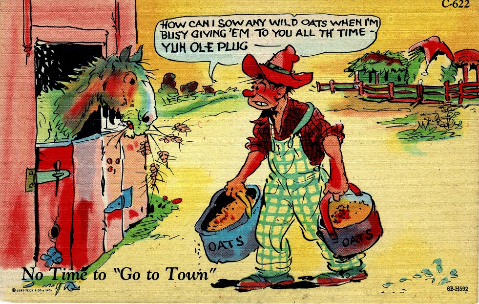 除了皮革材質,另有獨特表面紋理的亞麻明信片(POSTCARD LINEN,約1930 – 1945年代),尤其搭配著幽默漫畫風格(圖7),格外引人目光。