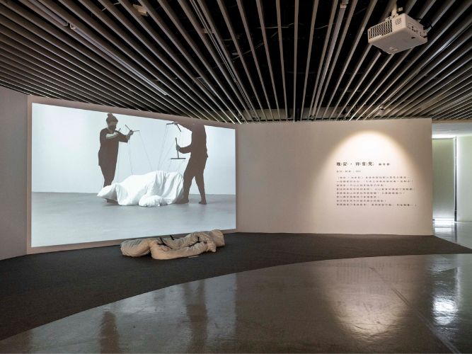 蘇育賢《晚安,待會見》是藝術家在家人深夜入睡後,一段關於父親與藝術家角色的自白,描述睡著的家人與自身的「雕塑」模樣。