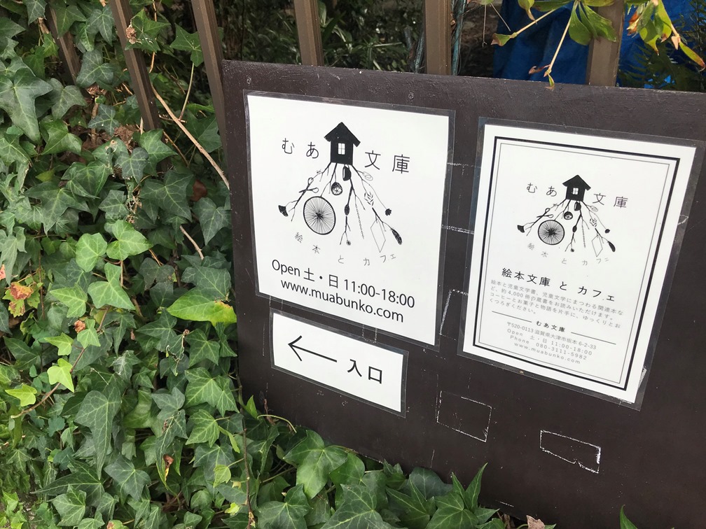 むあ文庫中繪本、兒童文學及兒童文學相關書籍約四千冊,藏書是父母親從大學時代開始陸續收集的,1993年為了完整地擺放藏書建造了一個專門的書房,以兩個女兒名字各取一個字取名為「むあ文庫」,當時女兒只是小學生,這個空間只有每個月第二個週六對外開放,吸引許多附近的小朋友前來看書,當時日本很流行「家庭文庫」在自己家中就有一個小小的私人圖書館。後來女兒們長大也陸續加入自己的選書,2017年女兒一起加入經營並重新對大眾開放,新增了咖啡及自家手作甜點,成為一個只在六日開門的空間(開放時間為11:00-18:00),涵蓋著兩代愛書人對書的熱情,吸引許多愛書人特別過來享受一個愉快的閱讀午後,如果有一趟關西京都旅行計畫的愛書人,記得要空出一個下午的時間待在這裡。